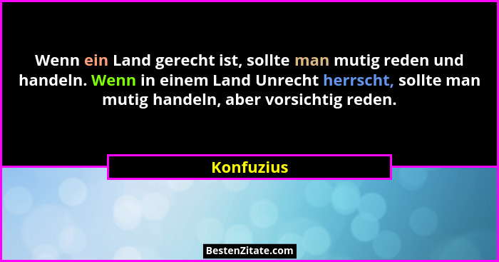 Wenn ein Land gerecht ist, sollte man mutig reden und handeln. Wenn in einem Land Unrecht herrscht, sollte man mutig handeln, aber vorsichtig reden.