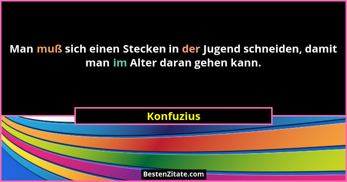 Man muß sich einen Stecken in der Jugend schneiden, damit man im Alter daran gehen kann.