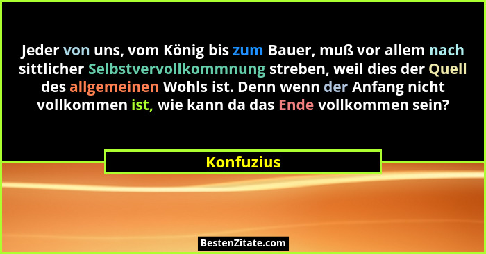 Jeder von uns, vom König bis zum Bauer, muß vor allem nach sittlicher Selbstvervollkommnung streben, weil dies der Quell des allgemeinen Wohls ist. Denn wenn der Anfang nicht vollkommen ist, wie kann da das Ende vollkommen sein?