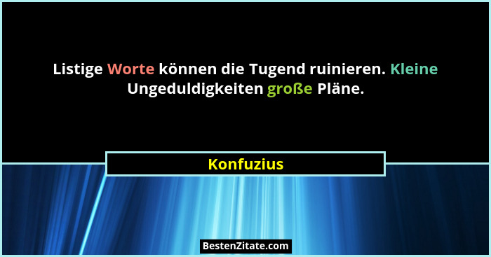 Listige Worte können die Tugend ruinieren. Kleine Ungeduldigkeiten große Pläne.