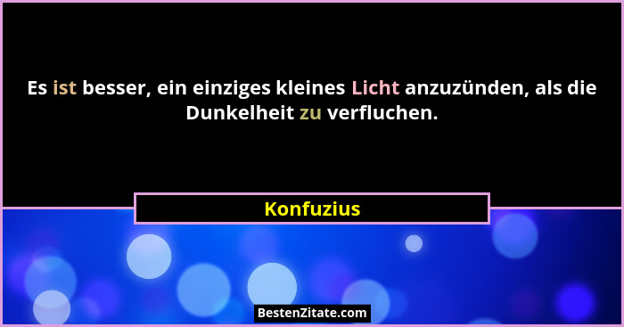 Es ist besser, ein einziges kleines Licht anzuzünden, als die Dunkelheit zu verfluchen.