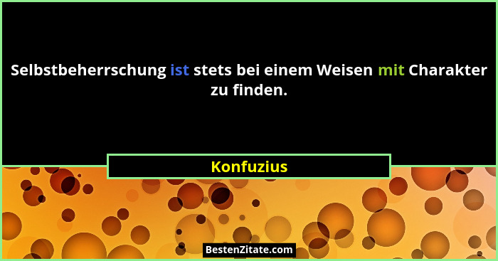 Selbstbeherrschung ist stets bei einem Weisen mit Charakter zu finden.