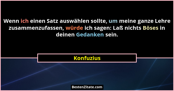 Wenn ich einen Satz auswählen sollte, um meine ganze Lehre zusammenzufassen, würde ich sagen: Laß nichts Böses in deinen Gedanken sein.