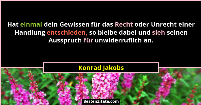 Hat einmal dein Gewissen für das Recht oder Unrecht einer Handlung entschieden, so bleibe dabei und sieh seinen Ausspruch für unwiderruflich an.