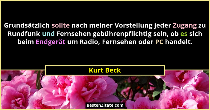 Grundsätzlich sollte nach meiner Vorstellung jeder Zugang zu Rundfunk und Fernsehen gebührenpflichtig sein, ob es sich beim Endgerät um Radio, Fernsehen oder PC handelt.