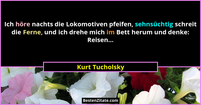 Ich höre nachts die Lokomotiven pfeifen, sehnsüchtig schreit die Ferne, und ich drehe mich im Bett herum und denke: Reisen...