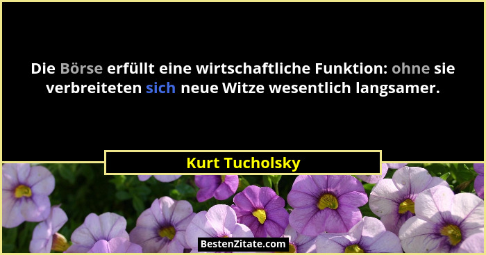 Die Börse erfüllt eine wirtschaftliche Funktion: ohne sie verbreiteten sich neue Witze wesentlich langsamer.