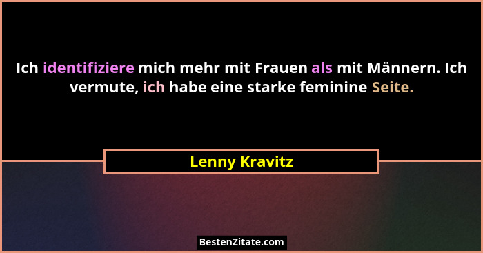Ich identifiziere mich mehr mit Frauen als mit Männern. Ich vermute, ich habe eine starke feminine Seite.