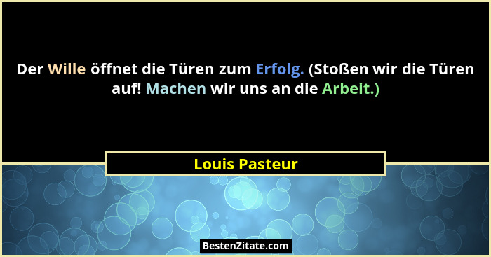 Der Wille öffnet die Türen zum Erfolg. (Stoßen wir die Türen auf! Machen wir uns an die Arbeit.)