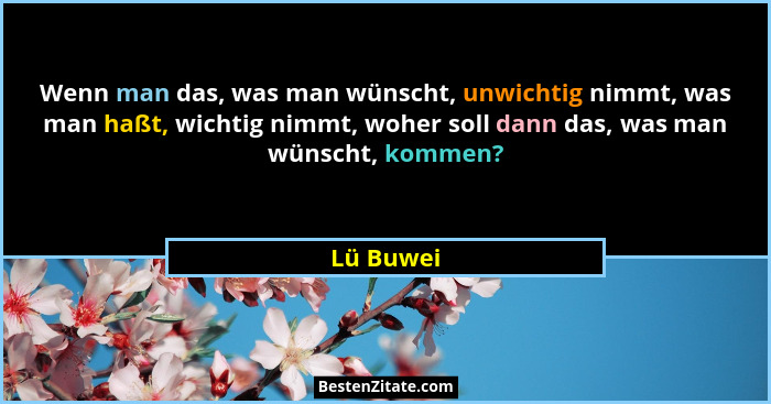 Wenn man das, was man wünscht, unwichtig nimmt, was man haßt, wichtig nimmt, woher soll dann das, was man wünscht, kommen?