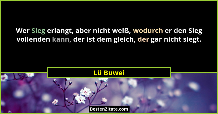 Wer Sieg erlangt, aber nicht weiß, wodurch er den Sieg vollenden kann, der ist dem gleich, der gar nicht siegt.