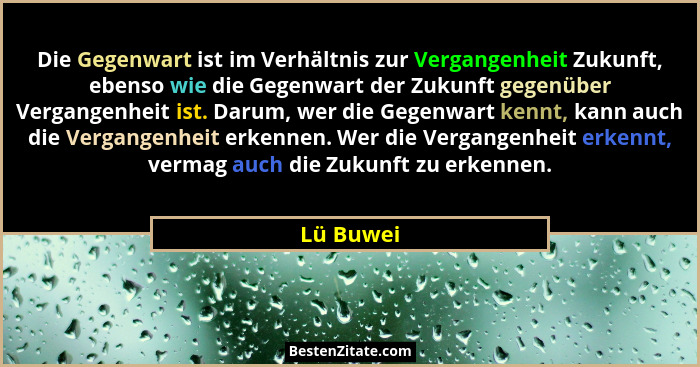 Die Gegenwart ist im Verhältnis zur Vergangenheit Zukunft, ebenso wie die Gegenwart der Zukunft gegenüber Vergangenheit ist. Darum, wer die Gegenwart kennt, kann auch die Vergangenheit erkennen. Wer die Vergangenheit erkennt, vermag auch die Zukunft zu erkennen.