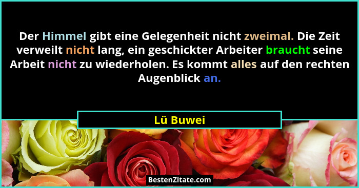 Der Himmel gibt eine Gelegenheit nicht zweimal. Die Zeit verweilt nicht lang, ein geschickter Arbeiter braucht seine Arbeit nicht zu wiederholen. Es kommt alles auf den rechten Augenblick an.