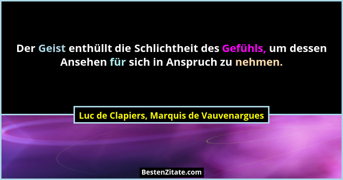 Der Geist enthüllt die Schlichtheit des Gefühls, um dessen Ansehen für sich in Anspruch zu nehmen.