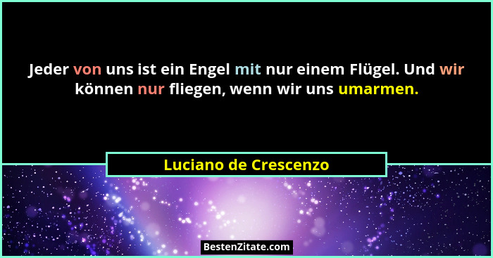 Jeder von uns ist ein Engel mit nur einem Flügel. Und wir können nur fliegen, wenn wir uns umarmen.