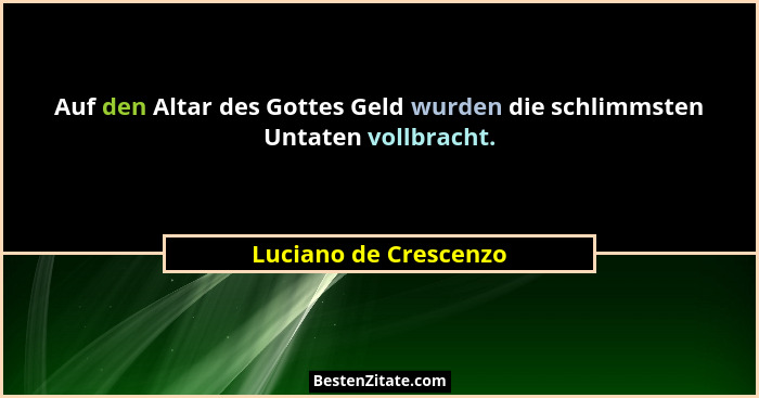 Auf den Altar des Gottes Geld wurden die schlimmsten Untaten vollbracht.