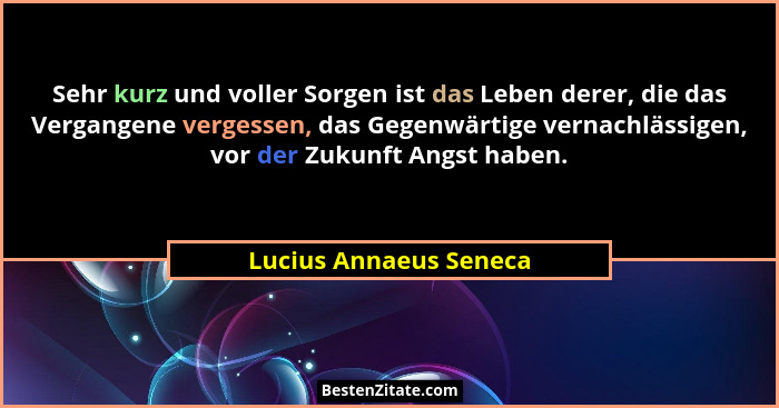 Sehr kurz und voller Sorgen ist das Leben derer, die das Vergangene vergessen, das Gegenwärtige vernachlässigen, vor der Zukunft Angst haben.