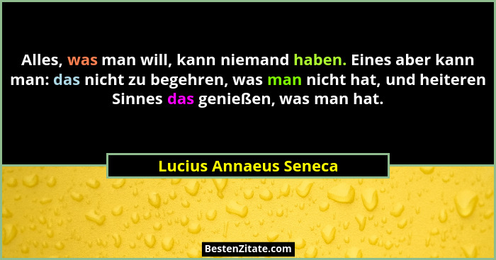 Alles, was man will, kann niemand haben. Eines aber kann man: das nicht zu begehren, was man nicht hat, und heiteren Sinnes das genießen, was man hat.