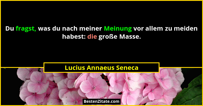 Du fragst, was du nach meiner Meinung vor allem zu meiden habest: die große Masse.