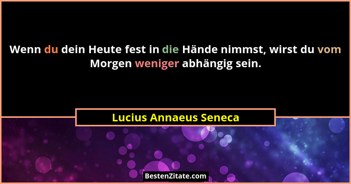 Wenn du dein Heute fest in die Hände nimmst, wirst du vom Morgen weniger abhängig sein.