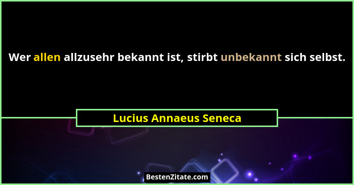 Wer allen allzusehr bekannt ist, stirbt unbekannt sich selbst.