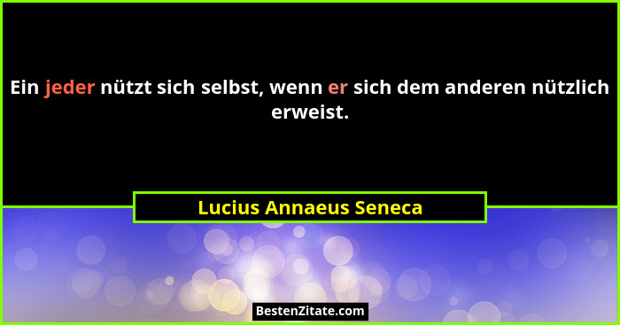 Ein jeder nützt sich selbst, wenn er sich dem anderen nützlich erweist.
