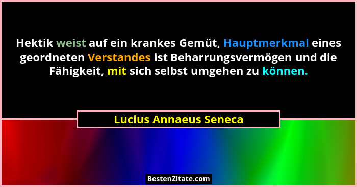 Hektik weist auf ein krankes Gemüt, Hauptmerkmal eines geordneten Verstandes ist Beharrungsvermögen und die Fähigkeit, mit sich selbst umgehen zu können.