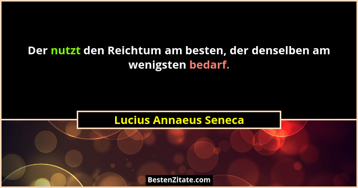Der nutzt den Reichtum am besten, der denselben am wenigsten bedarf.