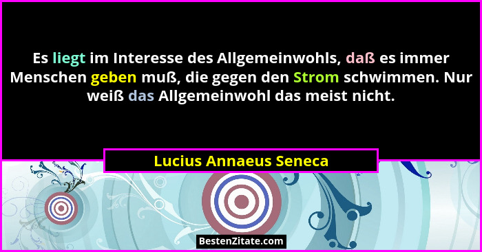 Es liegt im Interesse des Allgemeinwohls, daß es immer Menschen geben muß, die gegen den Strom schwimmen. Nur weiß das Allgemeinwohl das meist nicht.