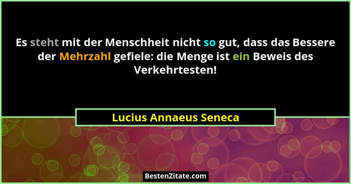 Es steht mit der Menschheit nicht so gut, dass das Bessere der Mehrzahl gefiele: die Menge ist ein Beweis des Verkehrtesten!