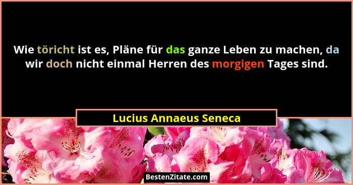 Wie töricht ist es, Pläne für das ganze Leben zu machen, da wir doch nicht einmal Herren des morgigen Tages sind.