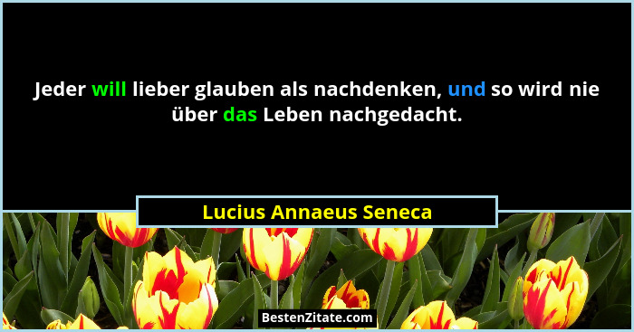 Jeder will lieber glauben als nachdenken, und so wird nie über das Leben nachgedacht.