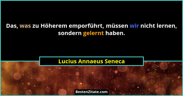 Das, was zu Höherem emporführt, müssen wir nicht lernen, sondern gelernt haben.
