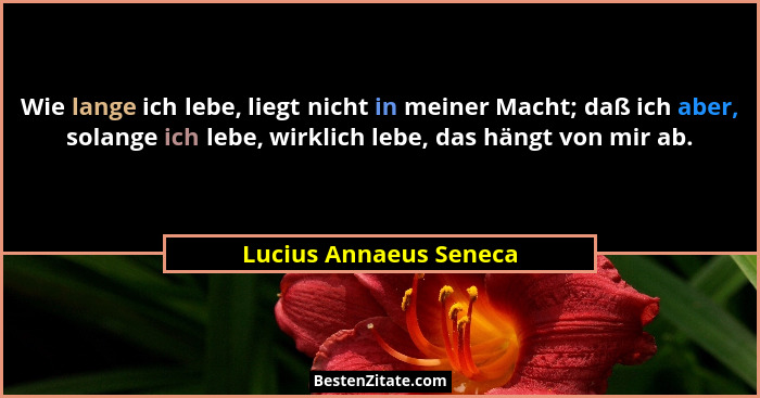 Wie lange ich lebe, liegt nicht in meiner Macht; daß ich aber, solange ich lebe, wirklich lebe, das hängt von mir ab.