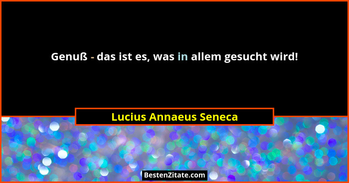 Genuß - das ist es, was in allem gesucht wird!