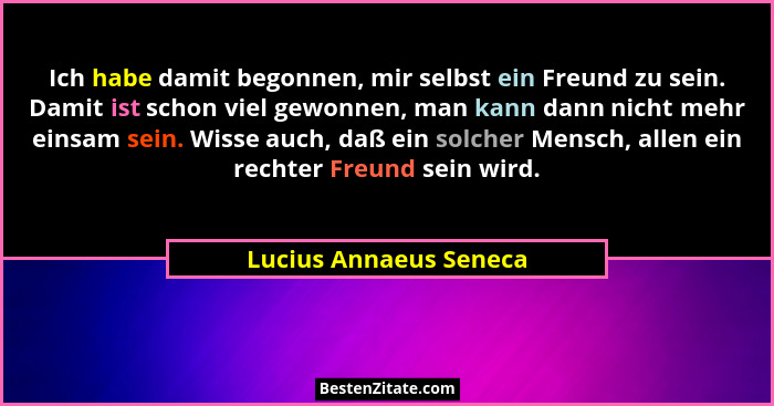 Ich habe damit begonnen, mir selbst ein Freund zu sein. Damit ist schon viel gewonnen, man kann dann nicht mehr einsam sein. Wisse auch, daß ein solcher Mensch, allen ein rechter Freund sein wird.