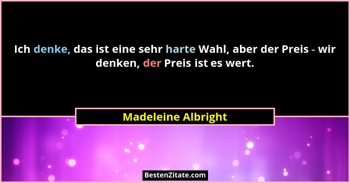 Ich denke, das ist eine sehr harte Wahl, aber der Preis - wir denken, der Preis ist es wert.