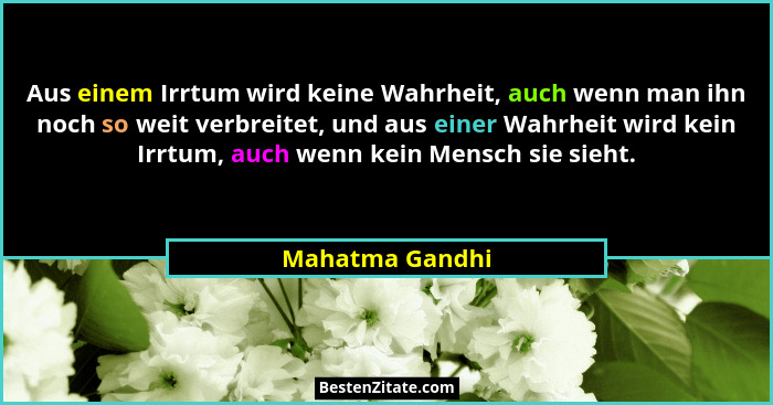 Aus einem Irrtum wird keine Wahrheit, auch wenn man ihn noch so weit verbreitet, und aus einer Wahrheit wird kein Irrtum, auch wenn kein Mensch sie sieht.