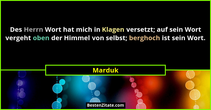 Des Herrn Wort hat mich in Klagen versetzt; auf sein Wort vergeht oben der Himmel von selbst; berghoch ist sein Wort.