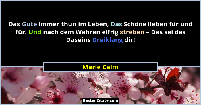Das Gute immer thun im Leben, Das Schöne lieben für und für. Und nach dem Wahren eifrig streben – Das sei des Daseins Dreiklang dir!