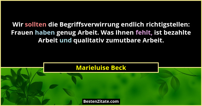 Wir sollten die Begriffsverwirrung endlich richtigstellen: Frauen haben genug Arbeit. Was Ihnen fehlt, ist bezahlte Arbeit und qualitativ zumutbare Arbeit.
