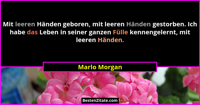 Mit leeren Händen geboren, mit leeren Händen gestorben. Ich habe das Leben in seiner ganzen Fülle kennengelernt, mit leeren Händen.