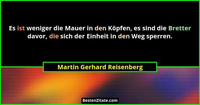 Es ist weniger die Mauer in den Köpfen, es sind die Bretter davor, die sich der Einheit in den Weg sperren.