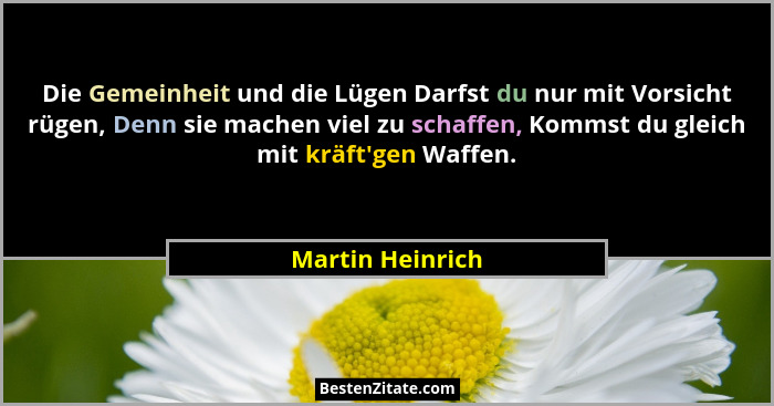 Die Gemeinheit und die Lügen Darfst du nur mit Vorsicht rügen, Denn sie machen viel zu schaffen, Kommst du gleich mit kräft'gen Waffen.