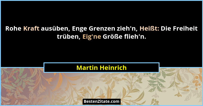 Rohe Kraft ausüben, Enge Grenzen zieh'n, Heißt: Die Freiheit trüben, Eig'ne Größe flieh'n.