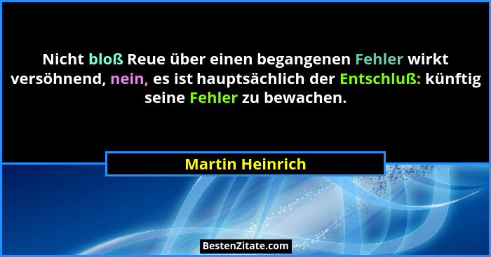 Nicht bloß Reue über einen begangenen Fehler wirkt versöhnend, nein, es ist hauptsächlich der Entschluß: künftig seine Fehler zu bewachen.