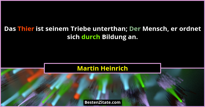 Das Thier ist seinem Triebe unterthan; Der Mensch, er ordnet sich durch Bildung an.