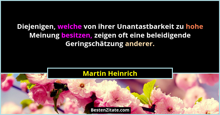 Diejenigen, welche von ihrer Unantastbarkeit zu hohe Meinung besitzen, zeigen oft eine beleidigende Geringschätzung anderer.