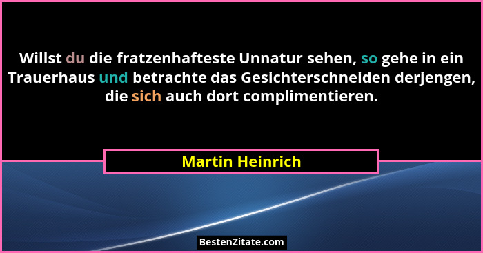 Willst du die fratzenhafteste Unnatur sehen, so gehe in ein Trauerhaus und betrachte das Gesichterschneiden derjengen, die sich auch dort complimentieren.