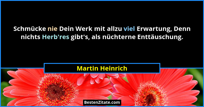 Schmücke nie Dein Werk mit allzu viel Erwartung, Denn nichts Herb'res gibt's, als nüchterne Enttäuschung.